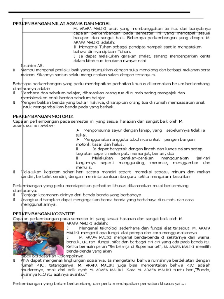 Teknik penulisan narasi raport tk sesuai kurikulum 2013 kurikulum pendidikan teknik. Contoh pengisian lppa laporan pencapaian perkembangan anak atau raport paud. Berhubung ini contoh kurikulum lama yaitu tahun 1995/1996, maka tinggal diganti dengan pengembangan yang terbaru menurut kurikulum yang terbaru yang mana ada perubahan yaitu kognitif. Nilai raport tk nurul yaqin wow bagus dapet nilai a sama b youtube. Berikut ini adalah contoh pengisian raport paud k13, yang akan sayab bagikan lengkap dengan contoh kata penutup di rapot paud, contoh narasi catatan anekdot anak paud, contoh narasi laporan perkembangan anak lppa tk semester 2, contoh pengisian format penilaian harian paud, , contoh penulisan narasi raport tk, narasi raport paud sentra seni, cara menulis komentar di raport yang sama susahnya.