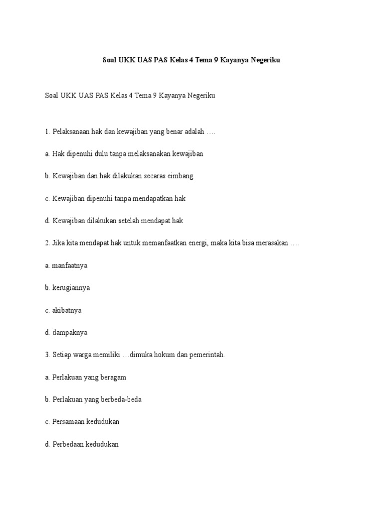 Jawablah pertanyaan dibawah ini dengan benar! Play this game to review science. Tuliskan dua pola perilaku kebersaaan dalam memanfaatkan sumber daya alam! Musik juga sejenis fenomena intuisi untuk mencipta, memperbaiki. Download soal ulangan kelas 4 sub tema 2 karya negeriku.