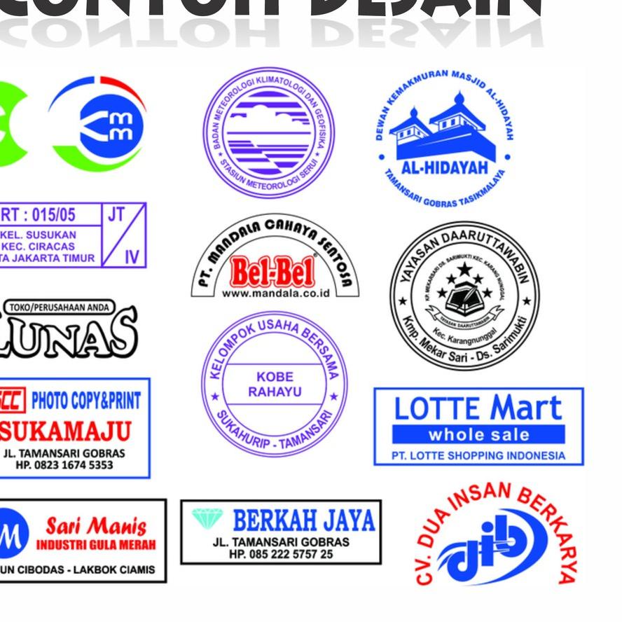 Contoh desain stempel usaha, sekolah, lunas, toko, panitia, rt, lurah, kepala desa, kecamatan, dll.