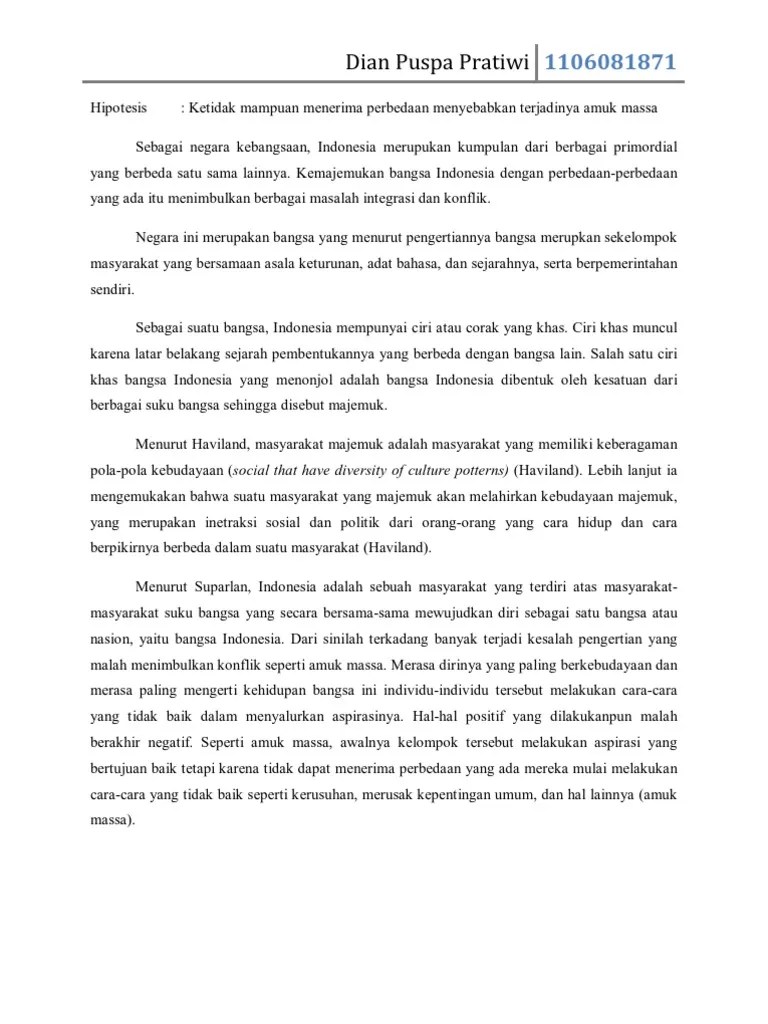 Indonesia merupakan negara majemuk yang terdiri atas beragam suku, adat, ras, budaya, dan agama.