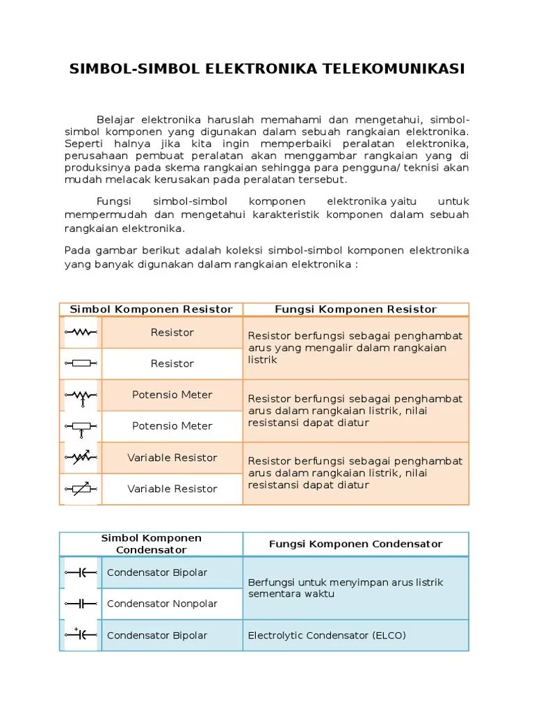 Di dalam rangkaian elektronika, resistor dilambangkan dengan huruf "r". Jika terdapat tegangan pada suatu rangkaian dan tidak ada hambatan sama sekali pada rangkaian tersebut maka arus yang mengalir akan sangat besar . Keseluruhan dari nilai yang berkaitan dengan resistor tersebut penting untuk mengetahui perancangan suatu rangkaian elektronika. Bahan ini yang akan menentukan kualitas dari resistor tersebut. Simbol resistor yang bisa digunakan dalam skema rangkaian elektronik. Ω) adalah satuan si untuk resistansi listrik, diambil dari nama georg ohm. Kedua simbol tersebut bukan merupakan bentuk asli resistor tetapi simbol tersebut digunakan untuk menggambarkan resistor pada rangkaian elektronika. Dilihat dari bahannya, ada beberapa jenis resistor yang ada dipasaran . Resistansi (resistance) · simbol :r · satuan : Dari gambar yang ditunjukan diatas terlihat bahwa perbedaan simbol resistor standar eropa dan us memiliki perbedaan yang cukup mencolok. Namun pada dasarnya, komponen pembentuk sebuah peralatan elektronik seperti resistor, kapasitor, transistor, dioda, induktor, ic, dan . Perhatikan gambar disamping, gambar tersebut merupakan simbol dari komponen.